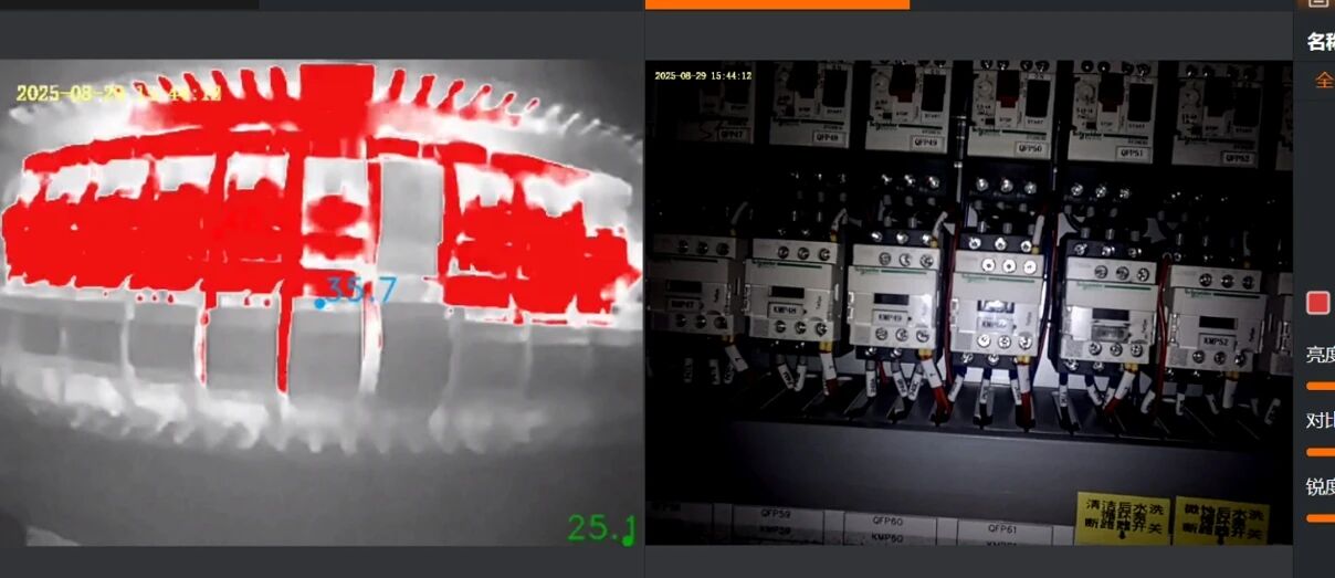 ▲配電柜2觸點(diǎn)等溫度實(shí)時監(jiān)測熱像圖