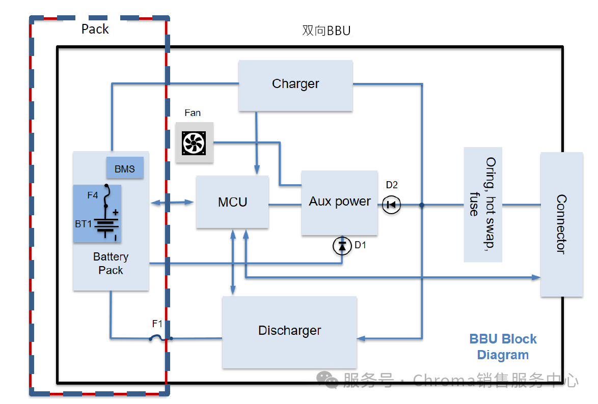 17020C/17050能源回收式充放電測(cè)試系統(tǒng),不僅能針對(duì)BBU電池模塊進(jìn)行容量測(cè)試、充放電效能驗(yàn)證與長(zhǎng)時(shí)間耐久性評(píng)估,更能透過高度擬真的應(yīng)用場(chǎng)景模擬,確保測(cè)試結(jié)果的真實(shí)性與可靠性。于伺服系統(tǒng)中,電力來源主要由PSU將AC轉(zhuǎn)換為48V DC供應(yīng)柜內(nèi)設(shè)備,而BBU模塊則透過DC-DC轉(zhuǎn)換器與直流母線連接,隨時(shí)監(jiān)測(cè)電壓狀態(tài)。一旦偵測(cè)到母線電壓下降至設(shè)定臨界值,即需于限定時(shí)間內(nèi)介入放電,以確保系統(tǒng)不中斷。