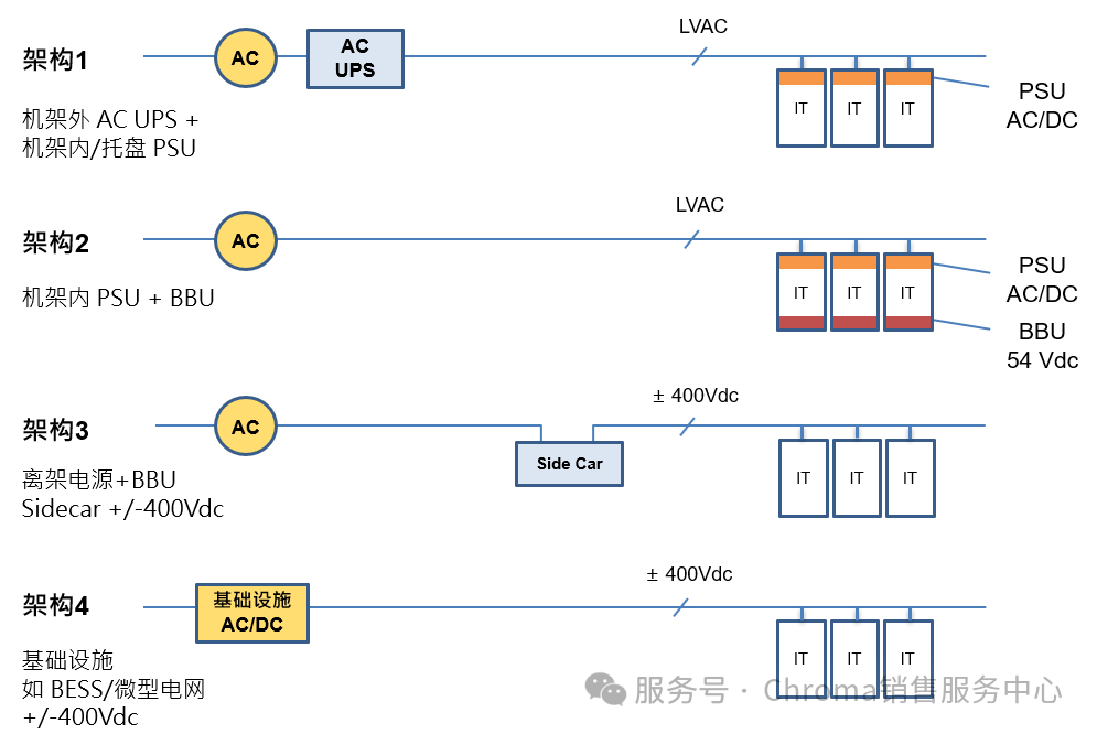 AI服務器應用擴展,高性能GPU提高了電力需求,備援電力由UPS轉(zhuǎn)往BBU(Battery Backup Unit)成為更高效的解決方案。BBU主要采用48V鋰電池架構(gòu),內(nèi)建于機柜內(nèi),減少AC-DC轉(zhuǎn)換的能量損耗,確保其穩(wěn)定運行。隨著AI服務器需求增長,備援電源將向±400V高壓發(fā)展,以提升供電效能。新架構(gòu)包含Sidecar模式(獨立電源模塊設置于機柜側(cè))及基礎設施級整合(高壓電源與機房基礎設施整合),以優(yōu)化供電穩(wěn)定性與效率。不僅滿足AI服務器日益增長的電力需求,更為未來 AI 技術(shù)發(fā)展奠定更加堅實的基礎