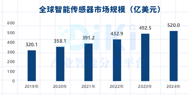 近期,深圳國(guó)家高技術(shù)產(chǎn)業(yè)創(chuàng)新中心發(fā)布《數(shù)說“十五五”新興和未來產(chǎn)業(yè)布局》系列內(nèi)容,披露了部分新一代信息技術(shù)產(chǎn)業(yè)發(fā)展信息,其中,包括智能傳感器產(chǎn)業(yè)。本文僅簡(jiǎn)略披露部分相關(guān)智能傳感器產(chǎn)業(yè)信息,詳細(xì)數(shù)據(jù)請(qǐng)查看深圳國(guó)家高技術(shù)產(chǎn)業(yè)創(chuàng)新中心相關(guān)內(nèi)容。報(bào)告顯示,2024年全球智能傳感器市場(chǎng)規(guī)模達(dá)520億美元,同比增長(zhǎng)5.58%,2022-2024年復(fù)合增長(zhǎng)率為9.58%,預(yù)計(jì)未來將繼續(xù)穩(wěn)定增長(zhǎng)。